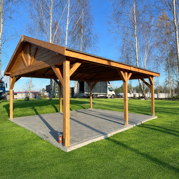 Podłoga drewnianaJest opcją dodatkową cena jest wyliczana z obrysu altany, jeśli chcesz żeby wystawała po za nią bądź był zrobiony taras trzeba uwzględnić to w polu UWAGI.