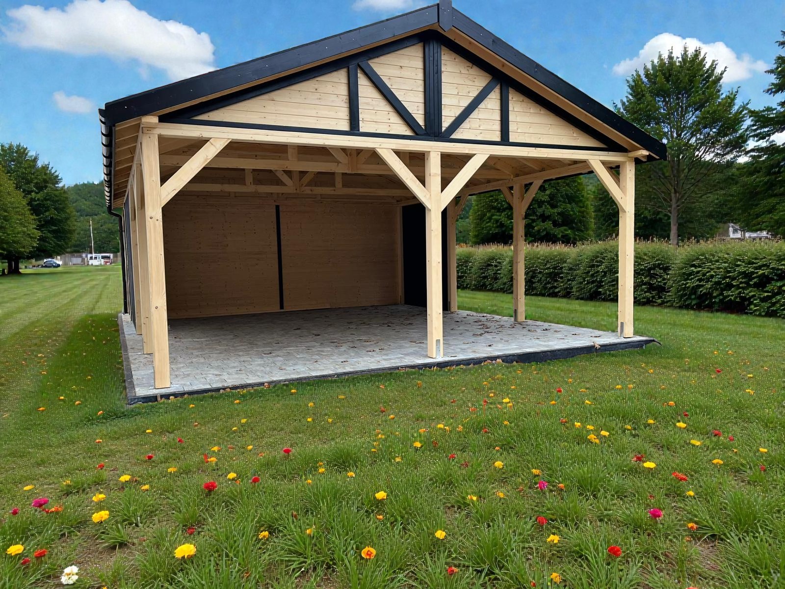 Podłoga drewnianaJest opcją dodatkową cena jest wyliczana z obrysu altany, jeśli chcesz żeby wystawała po za nią bądź był zrobiony taras trzeba uwzględnić to w polu UWAGI.
